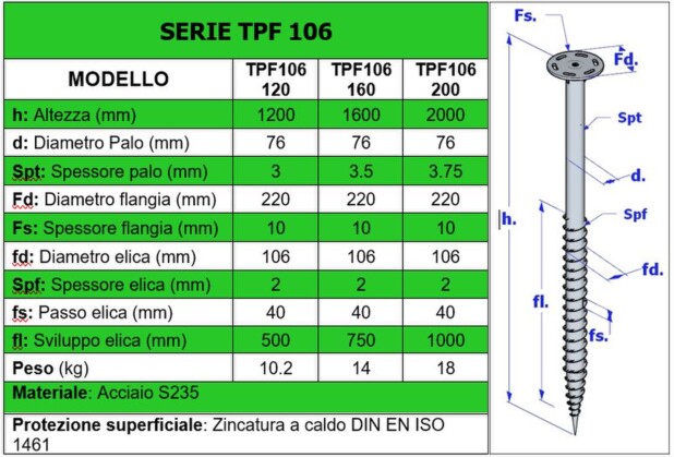 TPF106 modello con spira Ø 106 mm.